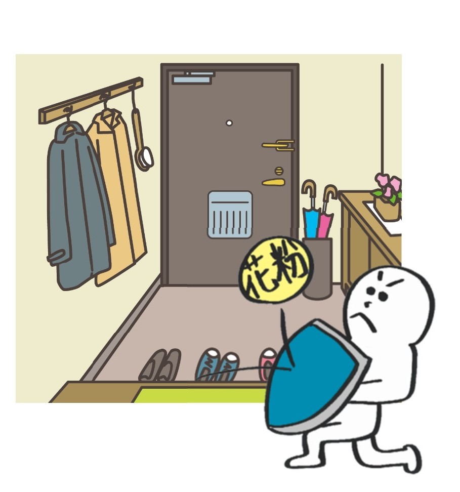 ①家に入る前に上着の花粉は払う
