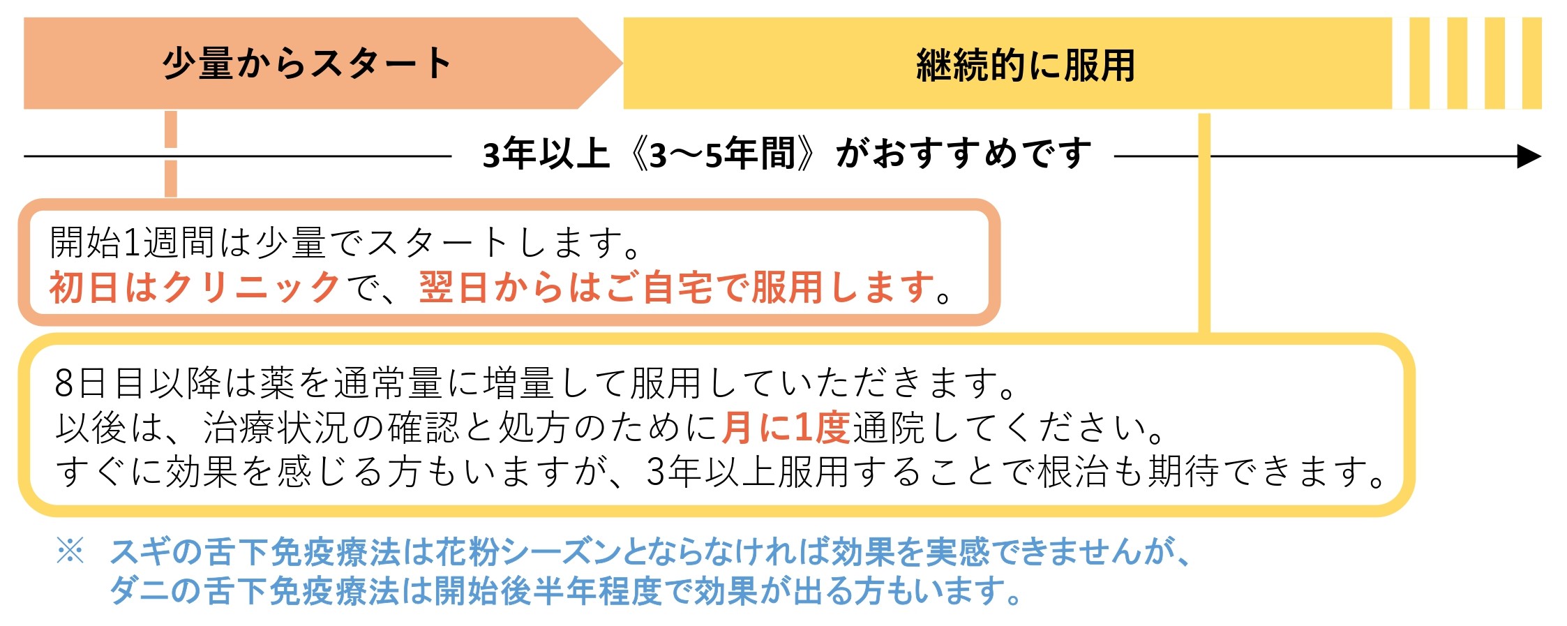 ・治療期間(3~5年間)の途中で治療を中止してしまうと効果が出ない可能性があります。