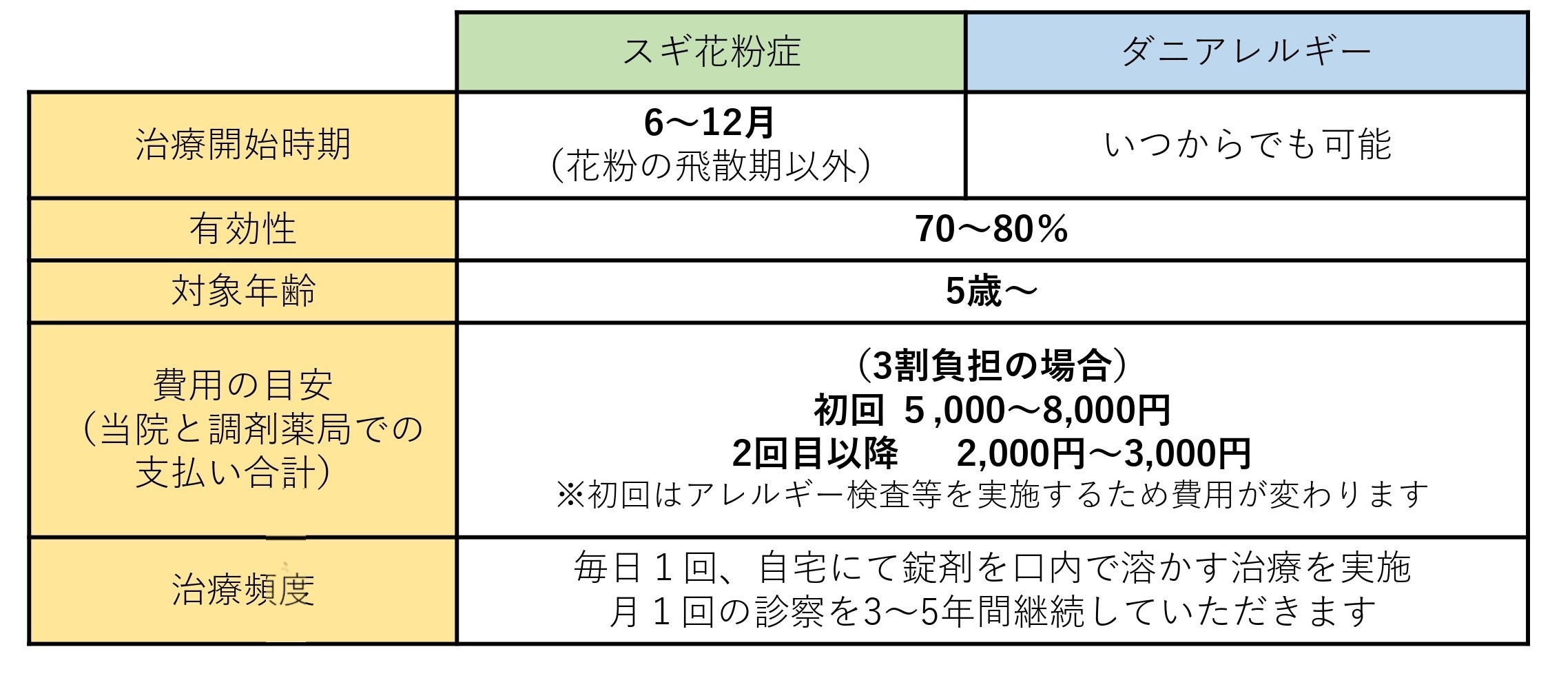 共に5歳以上(薬を舌下で保持することが可能な方)から治療可能。