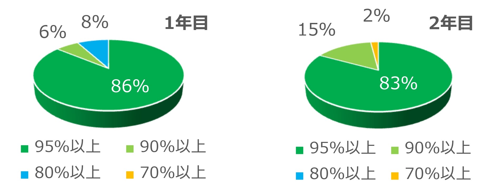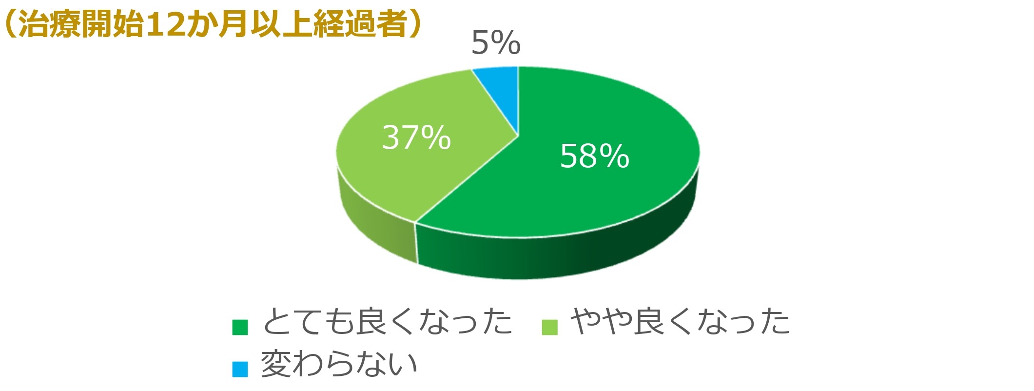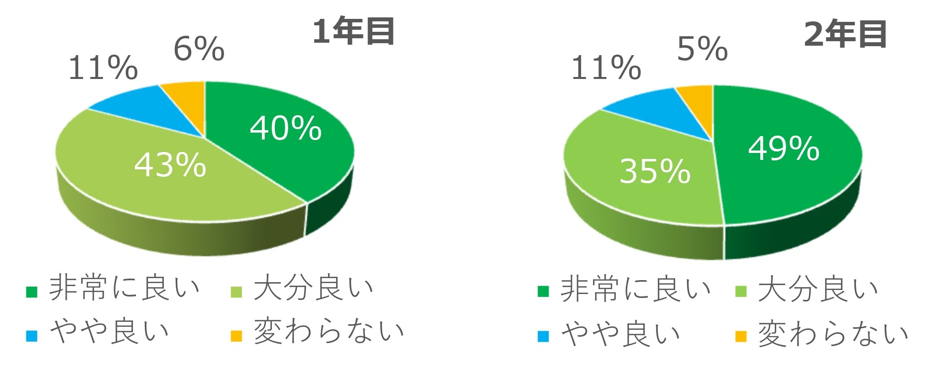 治療を始めた方の多くが1年目から効果を感じており、やや良い以上と回答した方は1年目で94%、2年目で95%となりました。