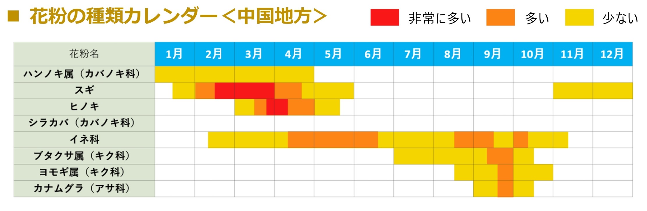 ■花粉の種類カレンダー
